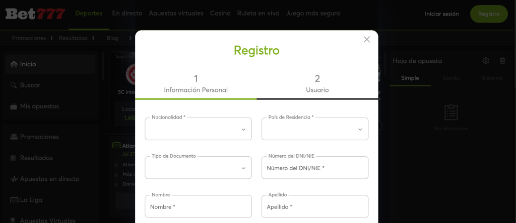 Cuando te registras en Bet777, se te solicitará que completes un proceso de verificación de identidad. Este paso es crucial para asegurar que la información que proporcionas es precisa y que eres mayor de edad para apostar. Generalmente, necesitarás subir copias digitales de documentos oficiales como tu DNI, pasaporte o licencia de conducir. Este procedimiento ayuda a Bet777 a confirmar tu identidad de manera efectiva.