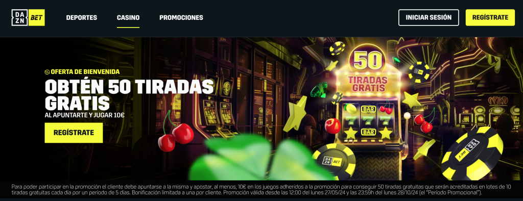 DAZN Bet es una casa de apuestas deportivas en línea que combina la experiencia de visualización deportiva con las apuestas en tiempo real. Ofrece una interfaz sencilla y centrada en el usuario, permitiendo a los apostadores acceder a una amplia gama de mercados y cuotas competitivas. DAZN Bet se destaca por integrar transmisiones deportivas en vivo con la plataforma de apuestas, ofreciendo una experiencia inmersiva y dinámica. Además, promueve el juego responsable y proporciona soporte al cliente eficiente, asegurando una experiencia segura y confiable para los usuarios.