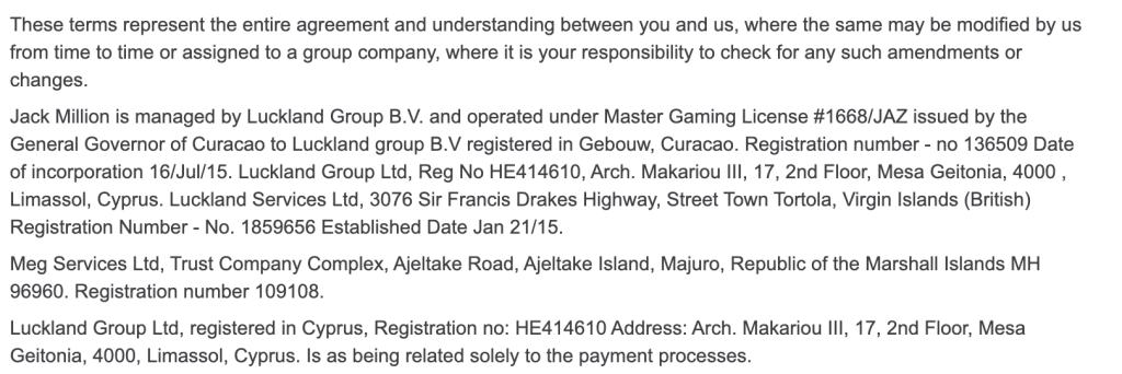 1. Operated by Luckland Group B.V.: JackMillion is managed by Luckland Group B.V., indicating it is backed by a company experienced in the iGaming industry.​
