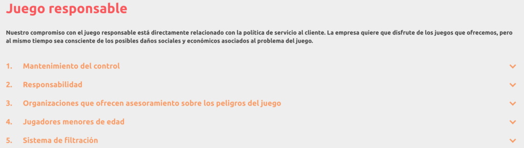 - Política de Juego Responsable: Mantienen una política de juego responsable clara y visible en su sitio web. Esta política detalla las medidas implementadas para promover un ambiente de juego seguro y ofrece consejos para mantener el control sobre el juego, enfatizando la importancia de jugar de manera consciente y controlada.
