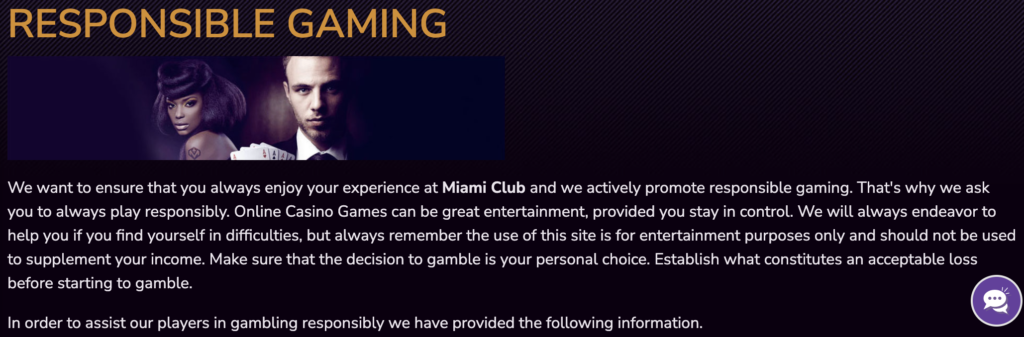 Miami Club Casino se compromete a promover la responsabilidad y el juego seguro entre sus usuarios, implementando diversas medidas y políticas para crear un ambiente de juego saludable y seguro. A continuación, se detalla una lista con una breve descripción de sus principales iniciativas en este ámbito: