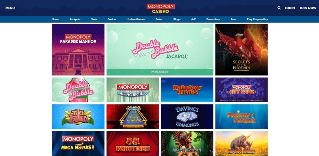 Al igual que el juego de mesa titular, Monopoly Casino ofrece una experiencia de casino única con muchos títulos destacados. Disfrute de más de 500 juegos , que van desde tragamonedas populares y juegos de mesa clásicos hasta divertidas tarjetas rasca y gana y juegos arcade. Incluso podrás encontrar una selección de títulos exclusivos basados en el juego de mesa Monopoly.