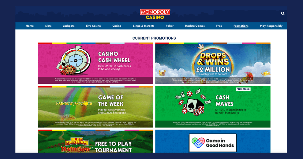 - Oferta de bono de Monopoly Casino: consulte las promociones