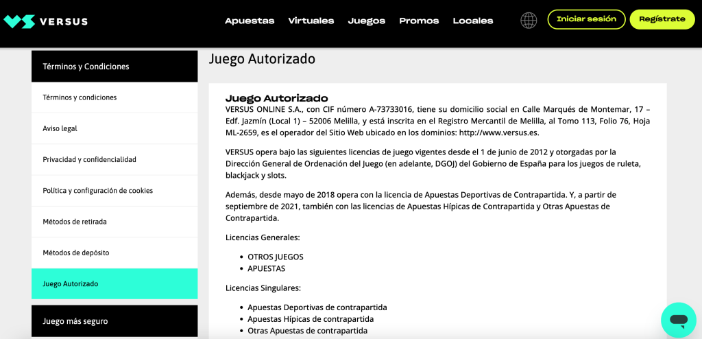 - Licencia de la Dirección General de Ordenación del Juego (DGOJ): Versus está autorizado por la DGOJ, el organismo regulador español encargado de supervisar todas las actividades de juego en España. Esta licencia asegura que Versus cumple con todas las leyes y regulaciones locales en materia de apuestas y juegos de azar.